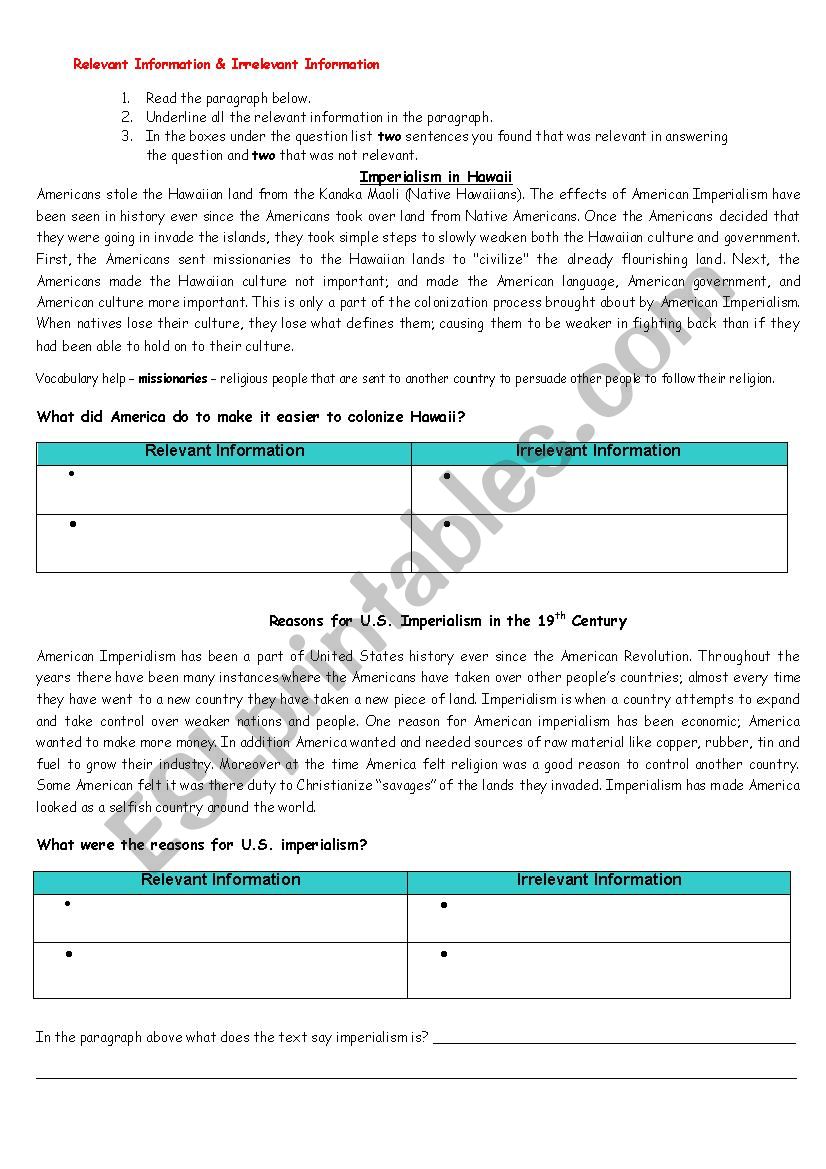 Quiz worksheet the five motives of imperialism study com / motives for imperialism hawaii alaska japan china cuba puerto rico philippines social:. Worksheets are new imperialism 1884, american imperialism, imperialism some of the worksheets displayed are new imperialism 1884, american imperialism, imperialism in southeast asia, imperialism, 10385 teaching geography. One country's culture impacting another country's culture. The increase number of people looking for works caused a decreased in wages. Some of the worksheets for this concept are american imperialism, american imperialism work, american imperialism lesson and materials, imperialism, five reasons for imperialism, imperialism, age of imperialism work with answers, saccullo name 8th grade social studies the spanish.